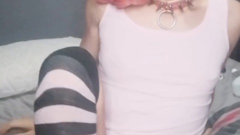 Domme dominates emo crossdresser and makes her take every drop of cum