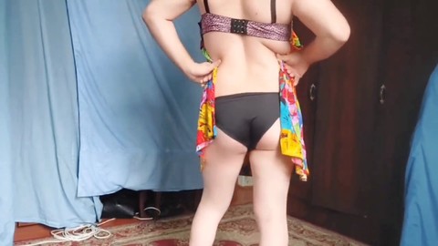 Sexy Ladyboy in Floral Mini Dress Seductively Strips and Teases with Her Voluptuous Booty