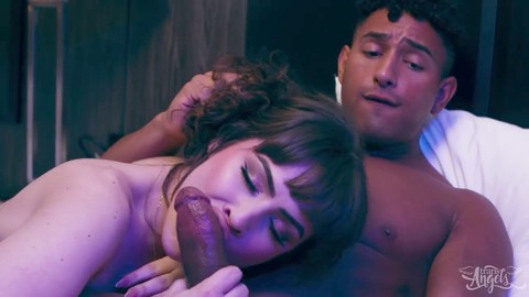Haven Rose pleasures Leilani Li's she-schlong in a secret anal session while her man gets busy