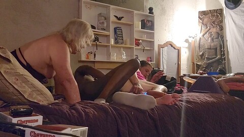 Transgender princess Kalena Rios enjoys a wild threesome with her dark-hued man and his boy