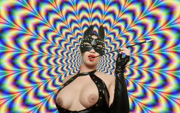 Schiava in pelle succhia grande cazzo trans in lattice padrona fetish bDSM